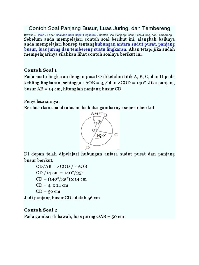 Ingatlah bahwa keliling seluruh lingkaran adalah 2πr, jadi rumus panjang busur di atas hanya menguranginya dengan . Cara menghitung panjang busur lingkaran, rumus menghitung panjang busur lingkaran, latihan soal mencari panjang busur, membandingkan kedua busur lingkaran. Download lagu cara menghitung panjang busur lingkaran 8.7 mb, download mp3 & video cara menghitung panjang busur lingkaran terbaru, mudah & gratis. Diameter (2r), yaitu tali busur terpanjang yang melalui titik pusat disebut diameter. Cara mencari luas tembereng diperoleh dari luas juring dikurangi luas segitiga.